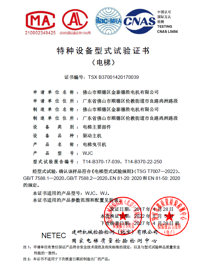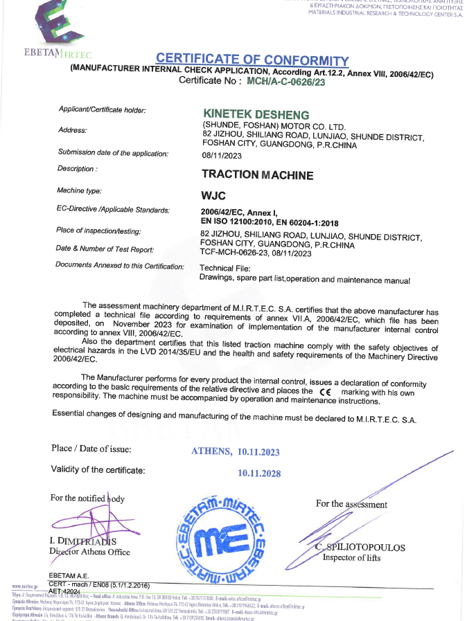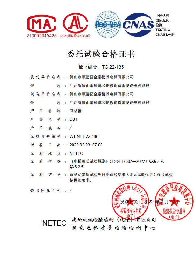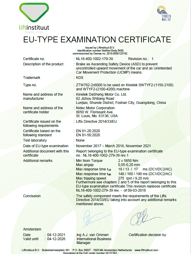 NIDEC lift motorlari, masalan, mahalliy lift sifatini tekshirish va tekshirish markazi, Shanghayning maxsus asbob-uskunalar inspektsiyasi va ilmiy institutlari, shu jumladan TUV / MIRTEC / LENTINSTITUTUTUT / CSA / UL / SGS-ni ishlab chiqadigan ko'plab o'quv inspektsiyasi va tadqiqot markazi. Ushbu institutlar nafaqat kuchli texnik yordam va optimallashtirilgan sertifikatlash echimlarini ta'minlaydilar, balki turli mahsulotlarni o'z vaqtida sertifikatlashni, shuningdek turli xil mahsulotlarni attestatsiyadan o'tkazishni tugatish uchun zarur bo'lgan xaridlarni samarali ravishda bajaradilar.