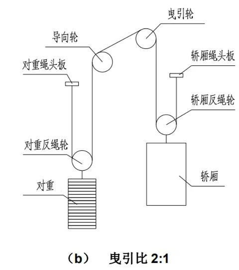 • Lift dizayni: tortish mashinasi va tegishli ramkani lift mashinasi xonasida almashtirish kerak, ammo mashinalar xonasida kvadrat dizayni ham mashina va qarshi o'qishni ham qo'shishni talab qiladi. Bundan tashqari, taroqtirish shlyuzi liftli tuyoq ichidagi mashinada va qarshi kurashda qo'shilishi kerak.